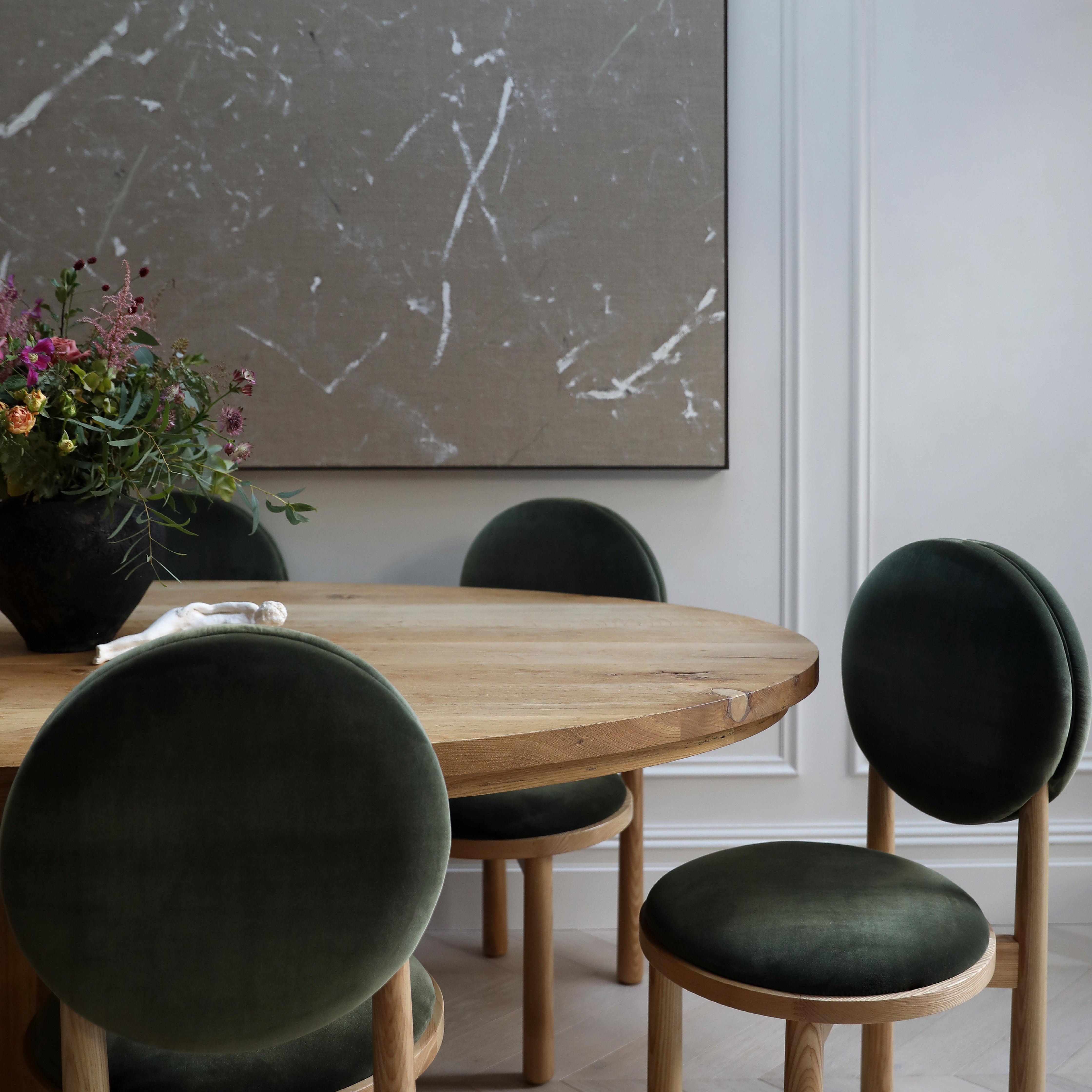 The Muse Circle Dining Chair, crafted in collaboration with No.17 House, offers a refined fusion of elegance and comfort.