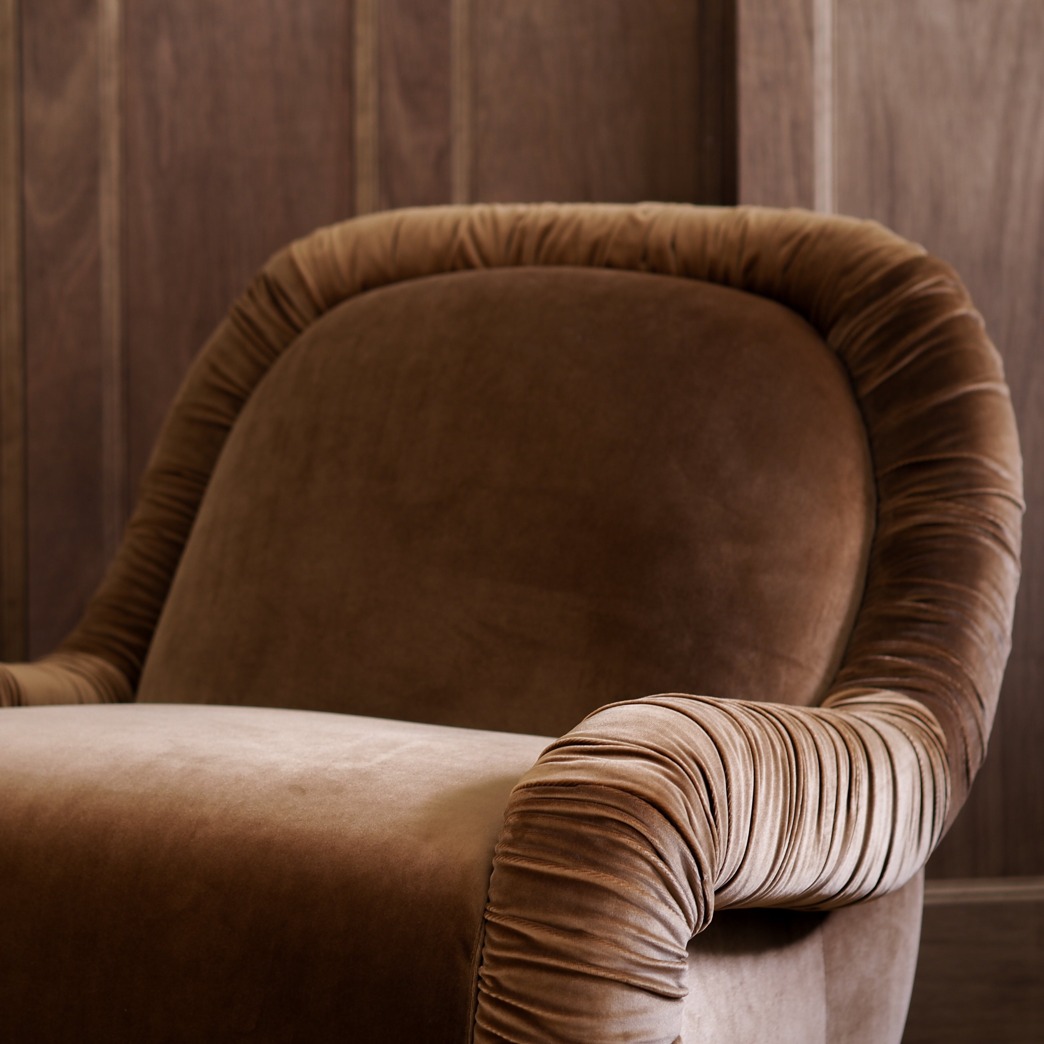 Featuring a spacious, upholstered seat for maximum comfort, our Ruched Lounge Chair draws inspiration from the luxurious interiors of modern hotels.